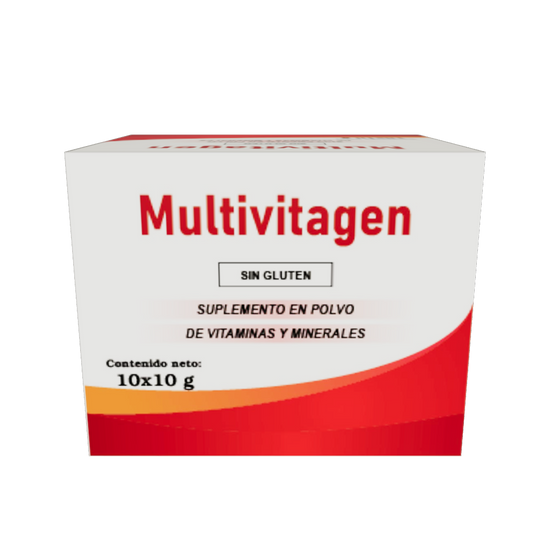 Multivitagen es un suplemento nutricional en polvo formulado con una combinación completa de vitaminas, minerales y aminoácidos esenciales. Su fórmula está diseñada para reforzar el equilibrio metabólico, fortalecer el sistema inmunológico y apoyar la recuperación en estados de alta demanda nutricional.