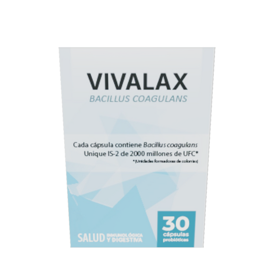 Ver comparacionesVivalax aporta una dosis efectiva de Bacillus coagulans Unique IS-2, una cepa probiótica altamente resistente que sobrevive al paso por el tracto gastrointestinal, lo que le permite llegar activa al intestino donde ejerce su acción benéfica.